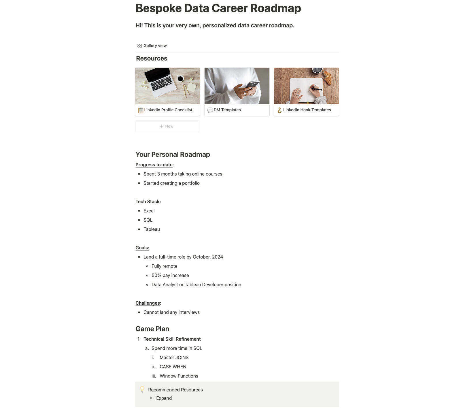 - Personalized Notion roadmap